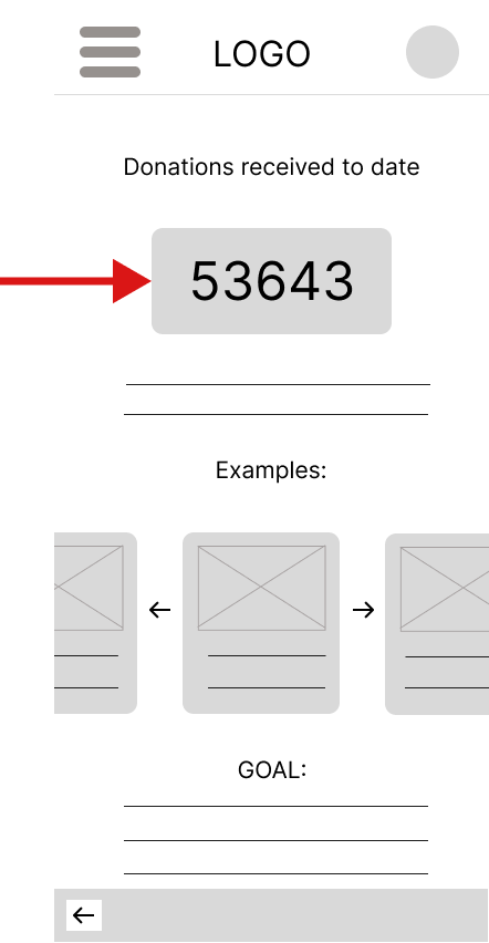 In den Wireframes wurde eine Funktion integriert, die die Anzahl bisheriger Spenden zu jedem Projekt sichtbar macht.